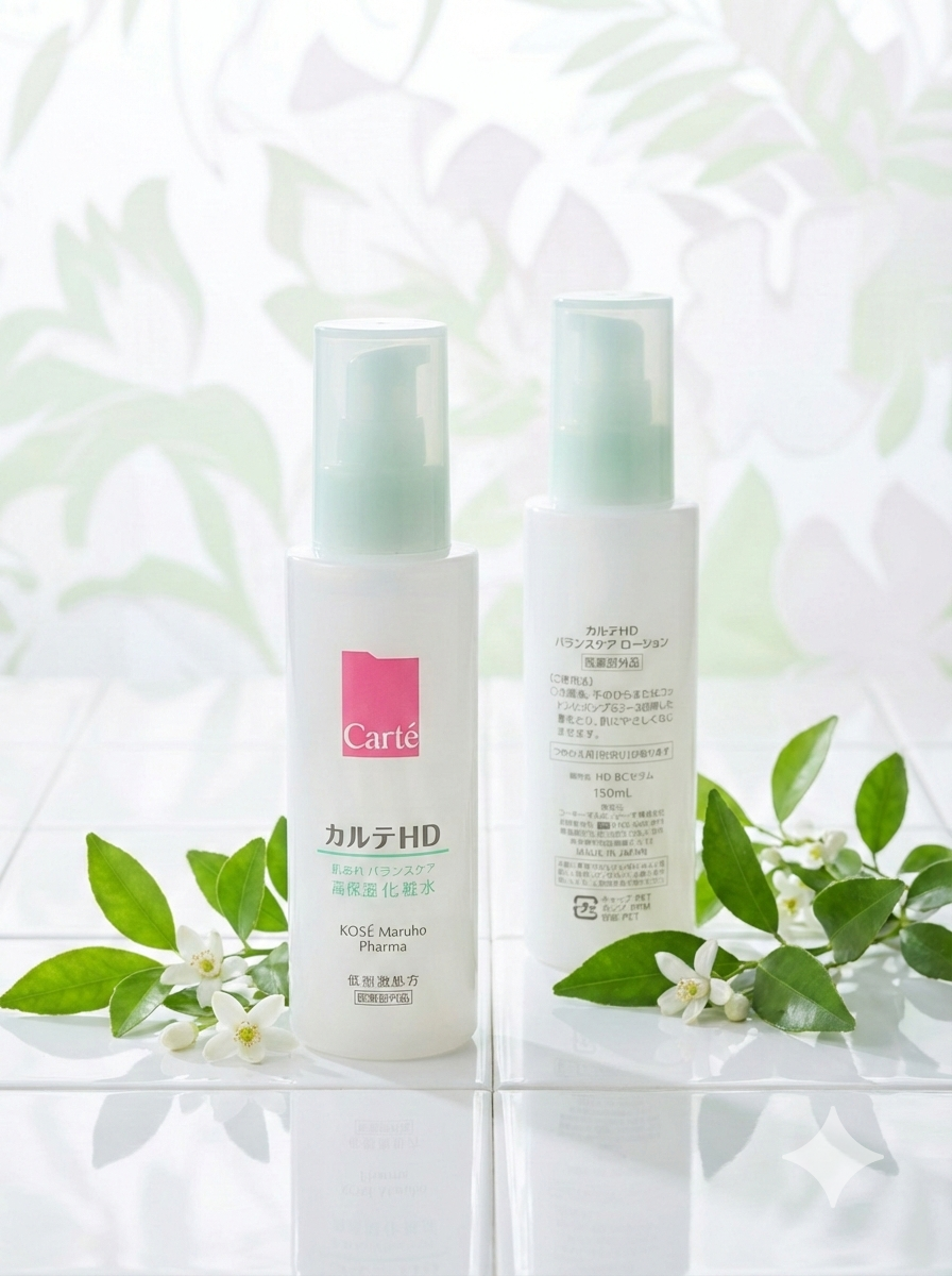 今回は、化粧品大手のKoseと、皮膚科学(ヒルドイド等)で有名な製薬会社マルホが共同開発した化粧水「Carte(カルテ)HD バランスケア」をご紹介します。